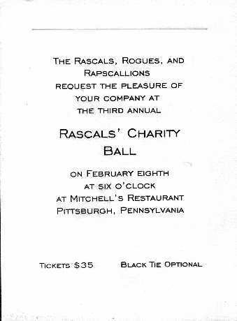 The Third Rascal Ball was held on February 8, 1997 at Mitchell's Restaurant in downtown Pittsburgh. The Eric Emmons Jazz Quartet provided music following dinner.