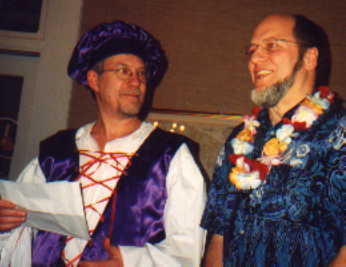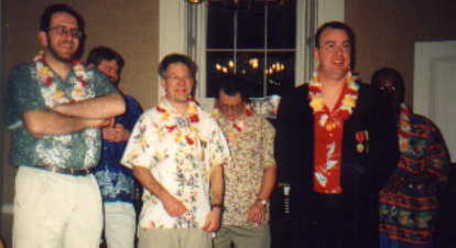 Twenty-four Rascals and friends attended the seventh annual Rascal ball which was held at the Chatham Village club house on February 10, 2001. Dinner was a Hawaiian buffet and Dennis Looney gave a review of the 2000 RR&R season. Director Bob Edmunds presented the J. Z. Landgraf Prize to Lee Wolfson, who donned his purple satin garb and read his acceptance speach in Italian, Dennis Looney providing translation. Tim Esaias was announced as the winner of the Rascal o' the Year trophy and received the trophy with good grace.