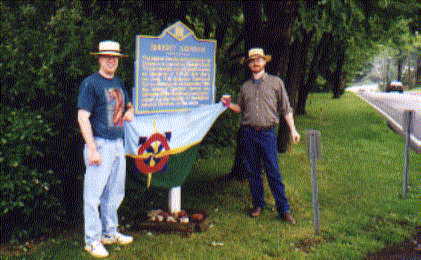 Delaware's high point is a driving challenge. In the middle of the suburban sprawl surrounding Wilmington, it is none too easy to find. Present at this high pointing of the RR&R flag were Sam Wood, Charles George, and Dan Morrison.