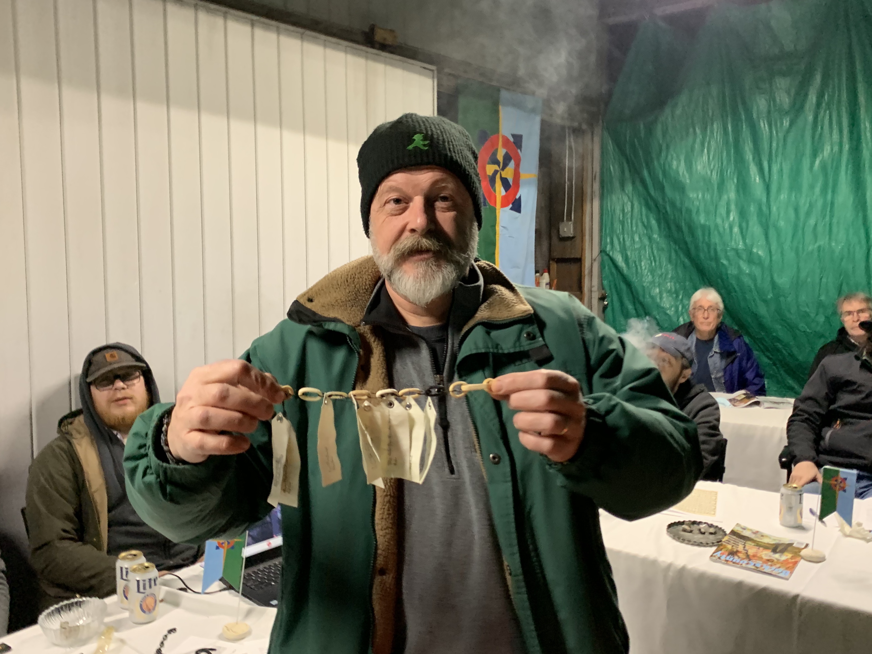 Lair No. 3 of the Rascals, Rogues, and Rapscallions held its first quarter 2021 meeting on Saturday, March 13, 2021 under the hood of the Huntingdon Valley Presbyterian Church barn. That space was surrounded by tarps and heated by two propane heaters. Tables were set up, dinner brought in from Iron Hill Brewery. The meeting was the delayed 2020 Mass Challenge, which was to produce a chain of an unusual substance. The winner of the 33th Rascal Mass Challenge competition was Michael Moscherosch. This was his second win, his first acquired 17 years ago in the 2003 competition. Michael's chain contained the following links:
