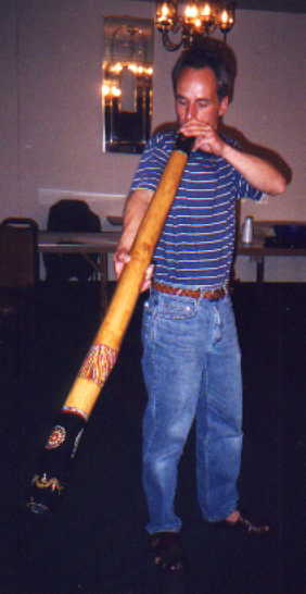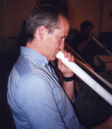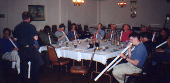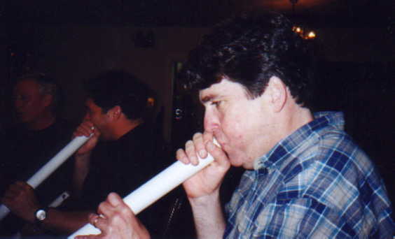 On May 5, 2001, Lair No. 3 of the RR&R met at the Moose Home in Doylestown to participate in a non-Challenge presentation by Michael Moscherosch, who gave a seminar on playing the digeridoo. The program opened with a rendition of The Banana Boat Song -- you know, "come Mr. Tallyman . . ." All those in attendance were given a didgeridoo by Michael and he put everyone through their paces, some of those assembled actually learning the fundamentals of playing the instrument.