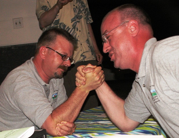 Initial balloting produced a tie between Michael Moscherosch and Dan Morrison. A subsequent run-off election again produced a tie between Moscherosch and Morrison. And so the matter was settled by an arm-wrestling contest, which was won by Dan Morrison, who therewith took his third Mass Challenge win.