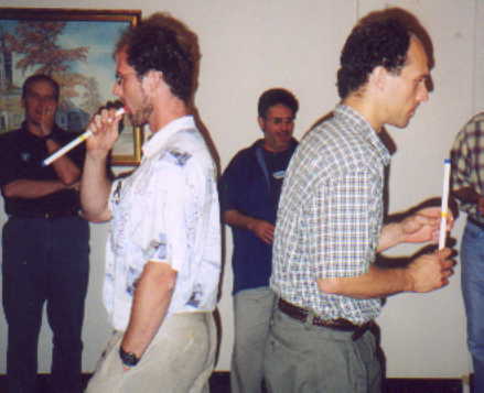 On August 11, 2001, Lair No. 3 of the RR&R met at the Doylestown Moose Home to hear Peter Marino's account of a duel that never was -- a dispute between Charles W. Brooke and Daniel H. Mulvany, two lawyers from Norristown, Pa. The dispute played out in a series of letters to the editor of the Montgomery Democrat and included accusations of ghost-writing poison pen letters, plagiarizing poetry and shady business dealing. The public dispute rose to such a pitch that Brooke wrote to Mulvany, calling him a "liar and scoundrel." Mulvany replied by saying that he was willing to resolve this matter according to the "laws of honor," i.e., the laws of dueling. Only problem with Mulvany's response is that he made it to Brooke while the laws of dueling call for such a reply to be made to Brooke's second. Peter instructed the assembled Rascals and friends in the 25 laws of dueling, so that we might not make the same mistake when faced with a similar circumstance.