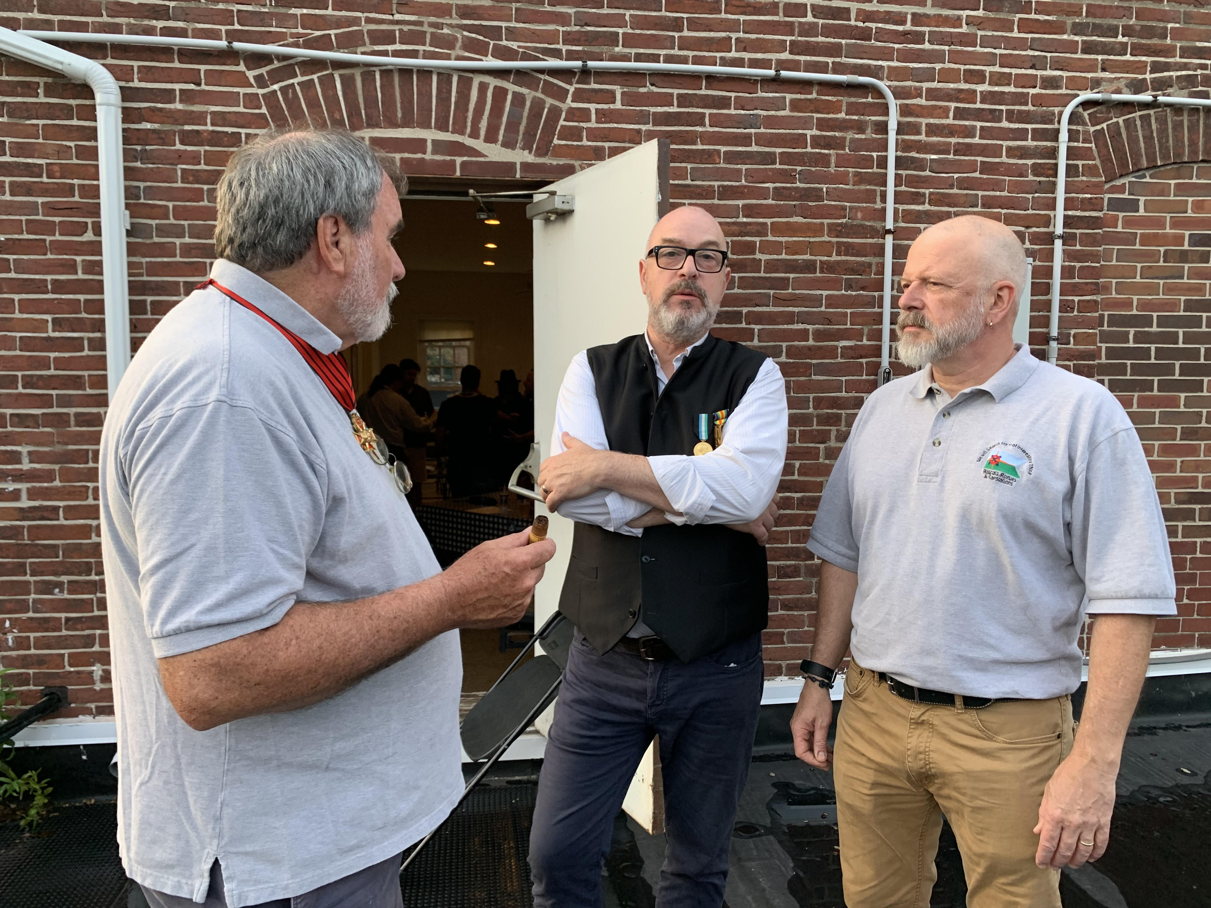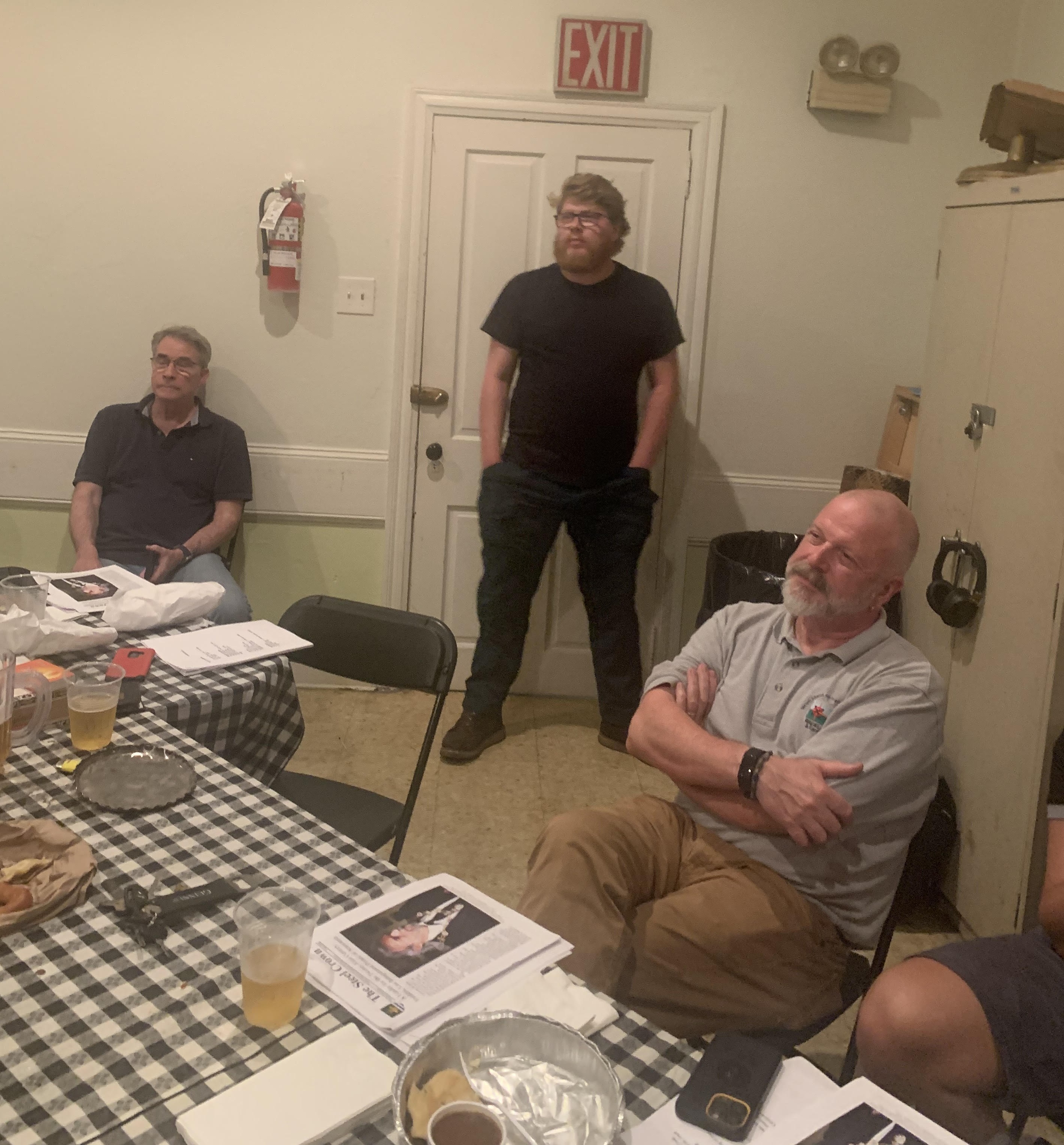 Lair No. 3 of the Rascals, Rogues, and Rapscallions held its annual Research Reports meeting on Saturday, September 9, 2023, in upper room at the Doylestown Maennerchor Society. The room was hot and stuffy, but fortunately outside the evening was cool and with the door and windows open, the room quickly became comfortable. The kitchen at the Maennerchor was unstaffed, so the Maennerchor arranged a special menu with Coach’s a nearby restaurant, for service. We ordered cheesesteaks and fries. Beer and soft drinks came up from the Maennerchor bar. A brief business meeting was held. George Green and Michael Landis, in turn, stood and proclaimed their Rascal Oath of Allegiance.