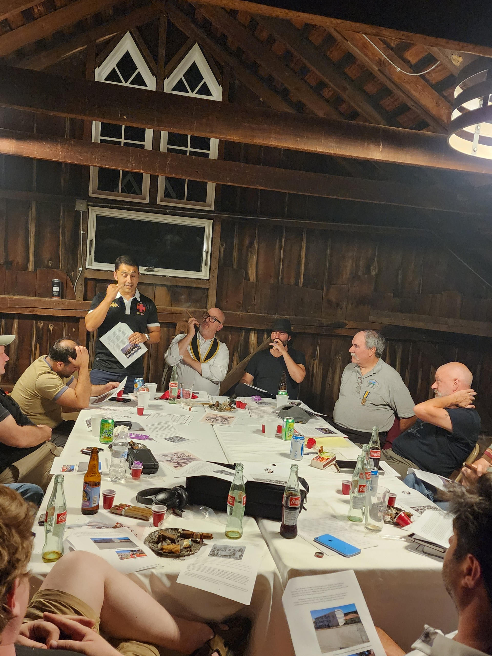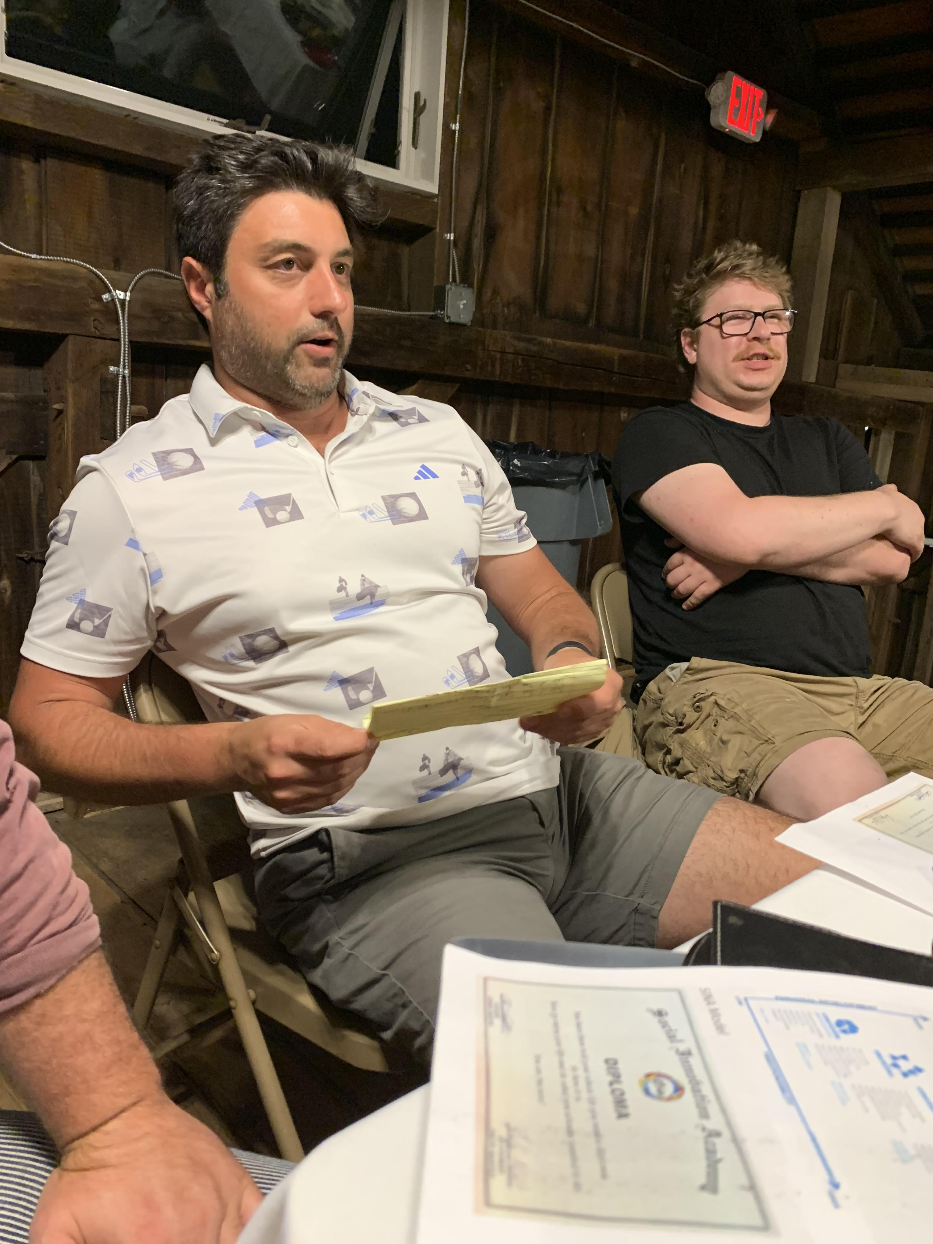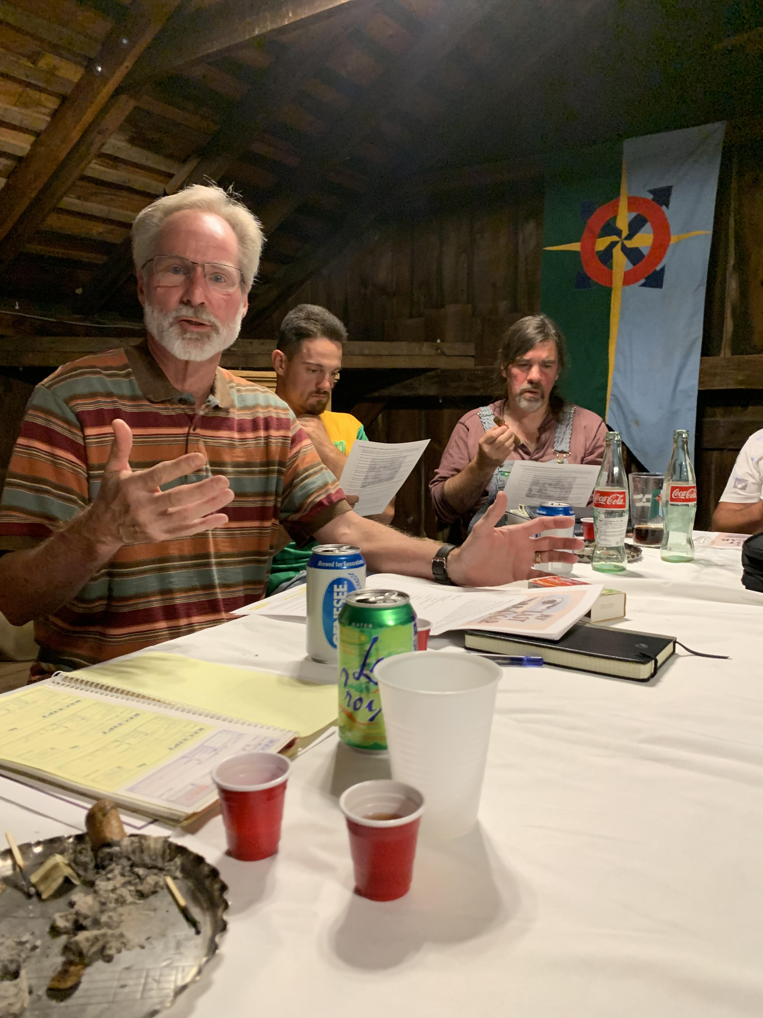 Lair No. 3 of the Rascals, Rogues, and Rapscallions held its third quarter 2024 meeting on Saturday, September 15, 2024, in upper room at the newly-renovated Ungerman Barn at Huntingdon Valley Presbyterian Church. The evening's program was the Lair's annual Research Reports meeting. Jim Barr spoke about Nearest Green, an African American whiskey distiller. Sean McVan reviewed "The Troubles" in Ireland. Dan Morrison spoke about club histories and the Pennsylvania Historical Society. Jordan Goretti discussed Art Deco and uranium glass. Michael Landis held forth on the paleo-archeology and the solutrean hypothesis. Jeff Sivek talked about his interest in Ben Franklin's Junto club. George Green gave us an update on his brewing experiments. Michael Moscherosch discussed his work with African entrepreneurs. Dave Hamalian discussed his interest in salons, of the French and talking variety (particularly the one at Graeme Park, which may have descended from Franklin's Junto). Bruno Sousa, attending his first RR&R meeting, told us about his favorite Brazilian soccer club, Vasco da Gama. Reporting online from Texas were Jason Enelow who discussed medieval spices, and Hayes Lewis who talked about useless Japanese inventions.