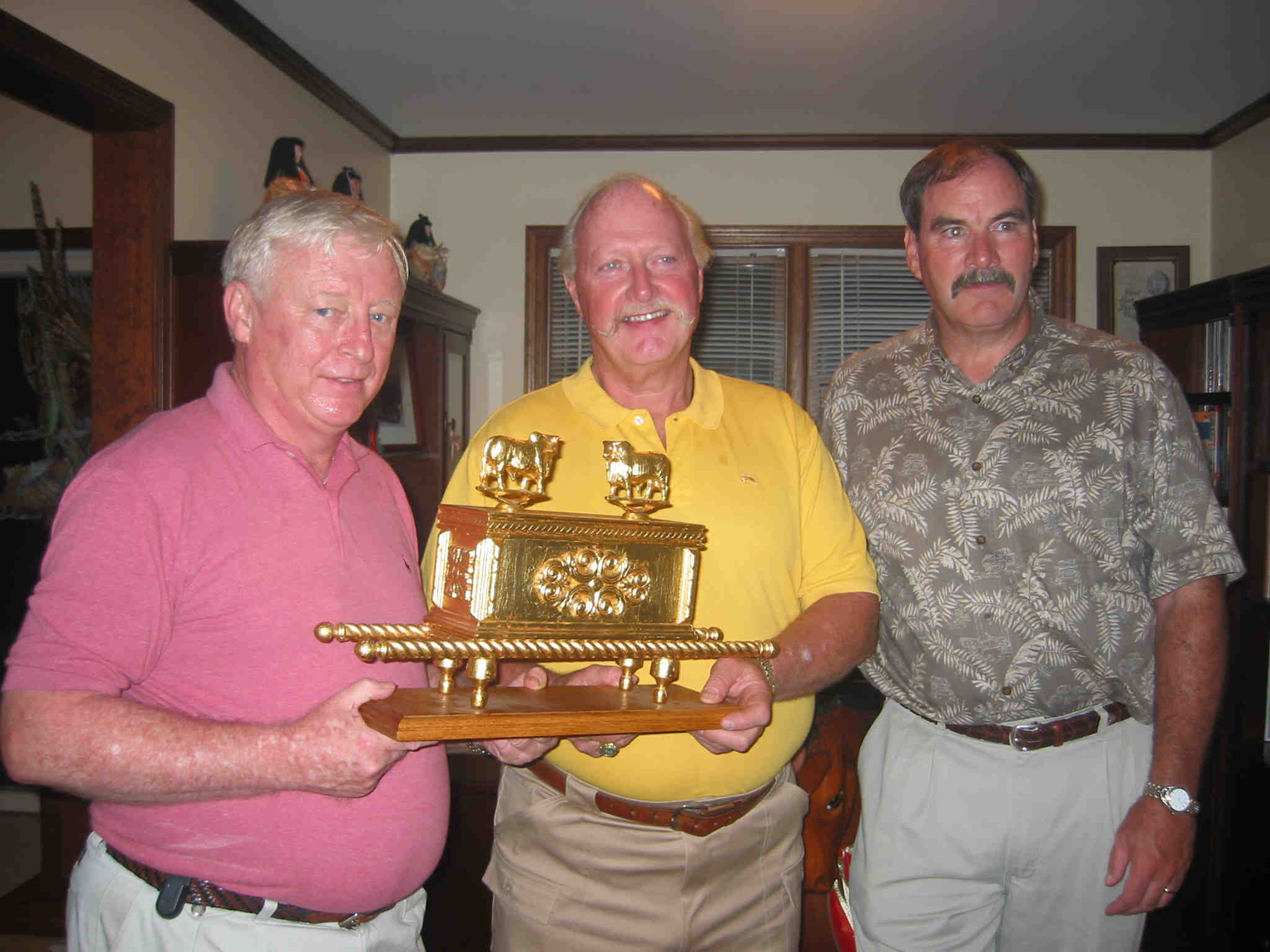 Karl Halter, on the left, hands the Rascal of the Year trophy to Ray Hull II in 2005. To the right is Jim Barr.