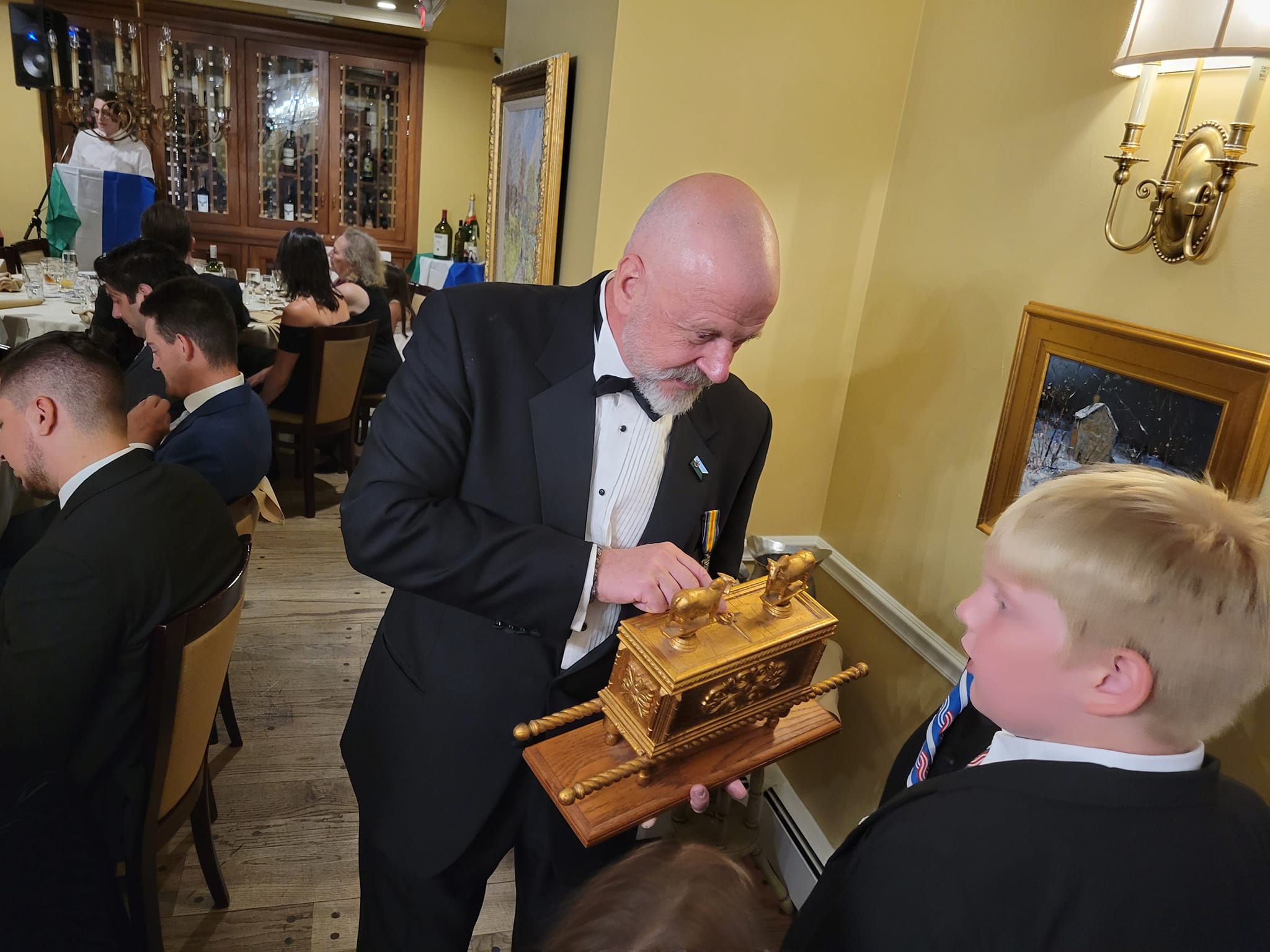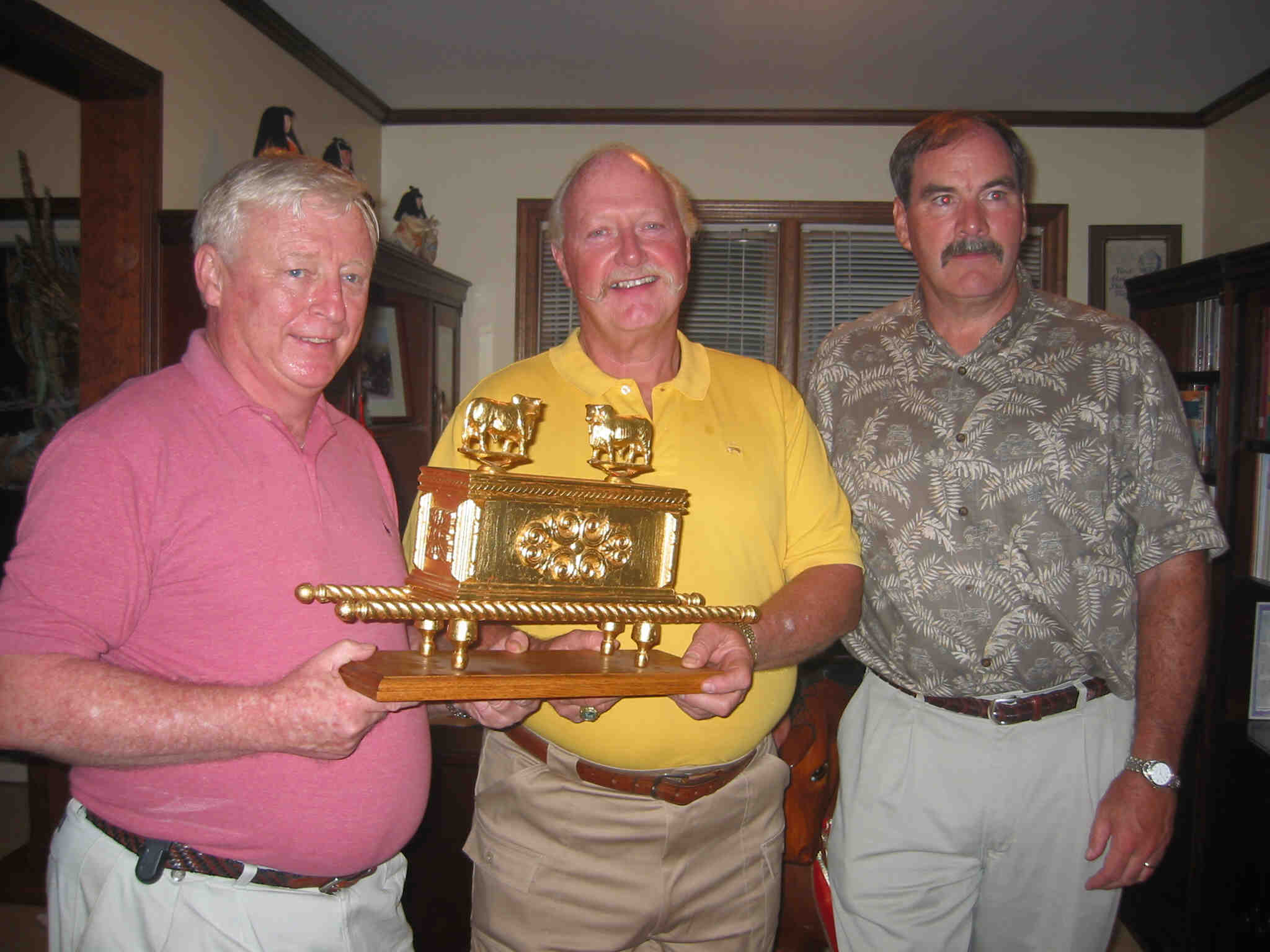 Ray Hull II receives the Ark of the Humidor from Karl Halter, as Jim Barr looks on, at the 2005 Lair No. 3 Ball.