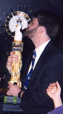 David Dunn receives Our Lady of the Interesting Thing from Lee Wolfson at the 1997 Lair No. 1 Ball.