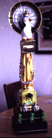 By secret ballot, each Lair elects a "Rascal o' the Year" at its annual Ball. The coveted award recognizes the Rascal who best exemplified the virtues of Rascaldom in the preceding year. The Lair No. 1 Rascal o' the Year trophy, known as "Our Lady of the Interesting Thing", was created by Dan Morrison out of junk found at a Salvation Army thrift store. It was first awarded in 1995. Sadly, an email to the Archivist of Lair No. 3, dated October 2, 2019, reports that Our Lady of the Interesting Thing was thrown into the trash by its last recipient.