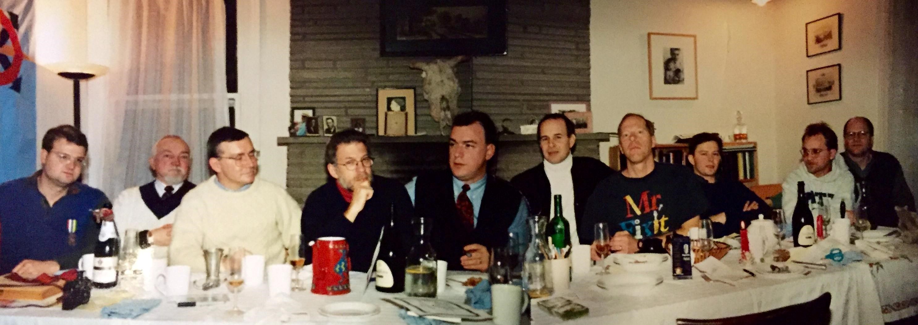 First Rogues Dinner, January 18, 1997. Left to right: Jeff Campbell, Don Kellander, Brian Holly, Lee Wolfson, Dan Morrison, Don Pickerine, Glenn Vernon, David Dunn, Greg Scheer, Dennis Looney.