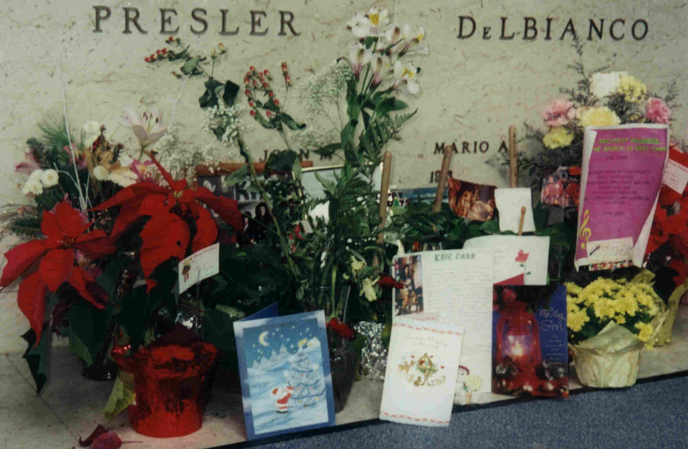 He was born Paul Charles Caravello on July 12, 1950 in Brooklyn, New York. He went to high school at the Manhattan High School of Art and Design where he majored in cartooning and photography. It was then that he became interested in playing drums because of the Beatles. His first band was the Allores but then he started his own band called the Cellarmen. He was in several bands including Salt and Pepper and Creation before auditioning for KISS in 1980. He became the new drummer and changed his name to Eric Carr. He was in KISS for 11 years and made many great records with the band including Hot in The Shade which included the song Little Caesar written by Eric that features him singing, playing drums, and playing bass guitar. Eric's last show with KISS was in New York, Nov. 1990. In April 1991 he had an operation to remove a tumor from his heart and was diagnosed with cancer in May. He died November 24, 1991. He is buried in Cedar Hill Cemetery in Middle Hope, NY near Newburgh. He now has two videos called Tale of the Fox and Inside Tale of the Fox which tell about his life and his time with the band. There is also a cd called Rockology that has all of the demos that Eric and Bruce Kulick worked together on. Some of the songs from his cartoon the Rockheads are also on this cd. Rest in Peace Eric. You are missed.