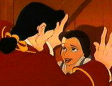 considers Belle a bit strange because of her love of reading and how she is always walking around town with her nose stuck in a book. These comments don't affect her much. She seems to be happy lost in her own little world. She gets upset very easily and is very emotional. But she demonstrates her strength and compassion by staying with the Beast and eventually, being able to love him despite his grotesque appearance. Belle provides the whole moral of the story, that true beauty is not only skin deep. Though Belle is one of the more believable characters, the same gender roles apply to her as well: when she gets upset she throws herself down and cries pitifully; she tucks the single strand of hair that pops out back in place; she lowers her eyes bashfully when she makes contact with the Beast. She fulfills her role by taking care of him (healing his wounds) and teaching him how to behave like a gentleman.