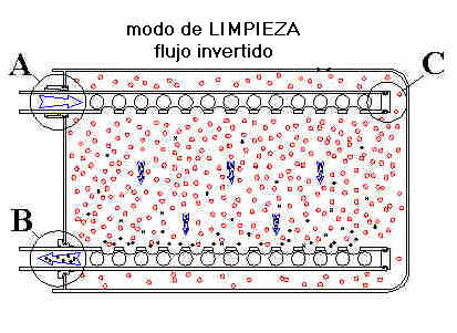 un flujo inverso para limpiar el material filtrante, una opción elegida por