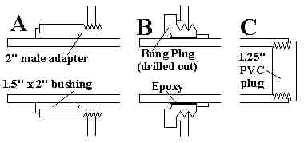 un extremo de cada pieza con un tapón interior (los venden con los tubos de PVC),