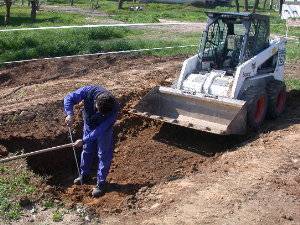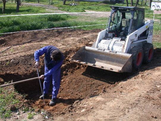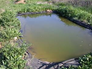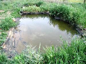 Dos charcas idénticas, separadas por < 1 m, y construidas y llenadas de forma simultánea. Diseño formal, rectangular. Dimensiones 7 x 4 m, profundidad 25 cm a 1 m. Excavación mecanizada, fondo "alisado" con una capa de arena. Impermeabilización con EPDM (Giscolene de Giscosa). Orillas aún sin rematar.