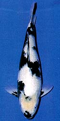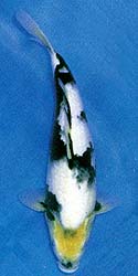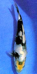 La cuarta y últimia foto muestra al Shiro Utsuri de Mr. Sawai con trers años y 17 pulgadas cuando ganó el título de Campeón 45bu Utsurimono, en el 22 All Kanto Show. Volviendo de nuevo a contemplar la primera foto, es difícil creer que estamos aún contemplando al mismo Koi. El desarrollo de este Koi es un testimonio verdaderamente asombroso sobre el proceso de desarrollo de un "tategoi", un tosai con potencial de campeón.