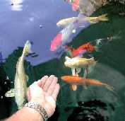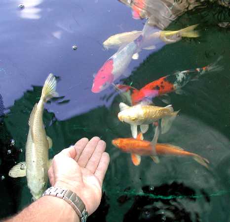 ¿Quieres ver un vídeo corto de los Koi acudiendo a mi mano? haz click en Vídeo