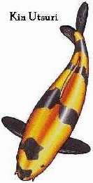 color de base negro, con algunas manchas de un color que se distribuyen opuestas lateralmente a las negras, como si las reflejaran. Según sea el segundo color, las variedades se denominan: Hi Utsuri (negro con manchas rojas), Shiro Utsuri (negro con manchas blancas), Ki Utsuri (negro con manchas amarillas), etc... |