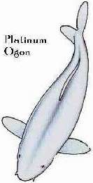 HIKARIMONO: un solo color metálico uniforme. Platinum Ogon (plata), Yamabuki Ogon (dorado metálico), Orenji Ogon (naranja metálico), Kin Matsuba (naranja metálico con escamación matsuba: escamas oscuras en su parte central, que recuerdan a una piña) y Gin Matsuba (similar pero en plateado).