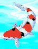 KOHAKU: blanco nieve con manchas rojas grandes y bien definidas, que no deben alcanzar los ojos ni la boca, la cola o las aletas pectotales. El rojo debe ser intenso y uniforme. Según el número de manchas rojas se distinguen: Moyo Kohaku (1 mancha continua a lo largo del cuerpo); Inazuma Kohaku (1 mancha a lo largo del dorso en forma de rayo); Nidan Kohaku (2 manchas); Sandan Kohaku (3 manchas); Yondan Kohaku: (4 manchas). Su distribución debe estar equilibrada, tanto en sentido longitudinal (de cabeza a cola) como lateral. Debe haber cierta distancia entre la última mancha roja y la aleta caudal. La variedad Kohaku es la más popular en Japón, y a ella pertenecen gran parte de los Kois que han resultado campeones en los Koi Shows más prestigiosos del mundo. |