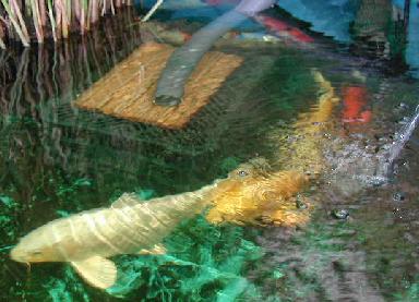 Es mejor tomar el agua del estanque a través de un sifón, que preferiblemente debe estar elevado sobre el nivel del fondo. El tubo de PVC flexible de 50 mm de diámetro o superior es ideal. La altura del agua en el sistema de filtración será igual a la del estanque. Si se usa una bomba sumergida, lo mejor es colocarla al final del sistema de filtración para evitar atascos. |