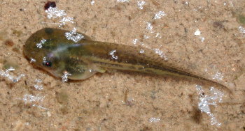 Larva de Hyla. Se pueden apreciar las patas traseras. |