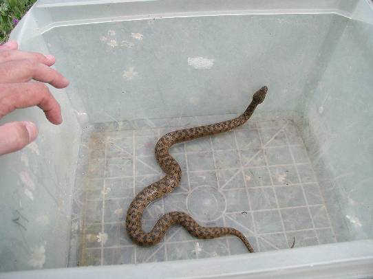 Esta primavera ya hemos extraído del estanque y trasladado cinco culebras distintas, tratando de evitar que acaben con las larvas de gallipato y de otros anfibios.