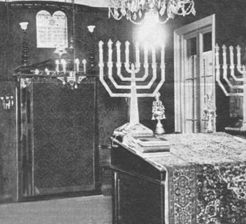 Esta otra fotografía del interior de la sinagoga aumenta el valor documental de aquella en que reproducimos el momento de la oración rabínica.