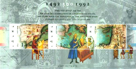 Hojita bloque de 1992, conmemorativa de los 500 años de la Expulsión de España de los judíos, por los reyes católicos Isabel y Fernando.