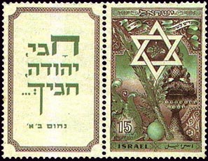 Emisión israelita con pasajes miniados de la fiesta de Shavuot y textos bíblicos en las bandeletas