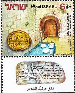 Este Túnel de Ezequías, representado en este magnifico sello israelí, fue abierto para proteger el suministro de agua de la ciudad mediante llevar agua desde el manantial oculto de Gihón, fuera de los muros de la ciudad, hasta el Estanque de Siloam (o Piscina de Siloé) dentro de la ciudad de Jerusalén. La Biblia explica cómo Ezequías hizo que se construyera este conducto de agua con el fin de suministrar agua a la ciudad debido a que se esperaba el asedio a la ciudad de manos de Senaquerib, rey de Asiria. (2 Reyes 20:20; 2 Crónicas 32:30.)¿Qué se festeja?