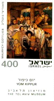 Judíos rezando en la sinagoga en Yom Kipur (1878), pintura del pintor judío polaco Maurycy Gottlieb (1856-1879).