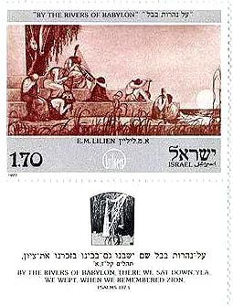 En la bandeleta el texto del Salmo 137:1 que dice: "Junto a los ríos de Babilonia... allí nos sentamos. También lloramos al acordarnos de Sión". Es digno de mencionar que el grupo musical ABBA compuso una de sus famosas canciones con las estrofas del bello Salmo 137