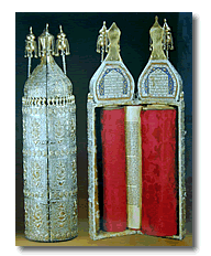 - El Keter Torá: Un ornamento de plata en forma de corona (keter = corona) a veces bañado en oro, adornado con frutos, que se coloca en la parte superior de los rollos cuando se saca la Torá del arca o cuando se la retorna a la misma.