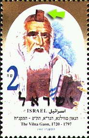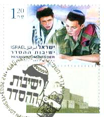 La flechita verde señala en este sello Israelí, la colocación en la frente de uno de los Telilot en la frente.