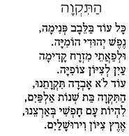 Durante los casi dos mil años de exilio, el pueblo judío siempre oraba sinceramente en su corazón por el retorno a Israel. Ellos pronunciaban diariamente oraciones especiales por el regreso y celebraban sus festividades de acuerdo a las estaciones y calendario de Israel. Este es el mensaje de la primera estrofa de Hatikva.