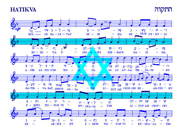 El Himno Nacional de Israel fue adoptado en 1948. Hatikva nos habla acerca de la "esperanza", la profunda esperanza del pueblo judío, a través de los muchos años de exilio, de que algún día pudieran regresar y ser libres en su tierra.