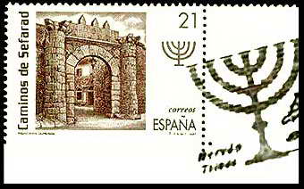 Selo da serie Camiños de Sefarad, amosando a Porta Nova de Rivadabia.