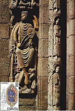 A catedral compostelana está chea de referencias ó pobo e relixión xudea. Se analizámo-lo Pórtico da gloria, obra cumio do románico, podémonos atopar que baixo o tímpano, no extremo esquerdo, está representado o pobo xudeu, mentres que no extremo dereito atópanse os xentís. No arco da esquerda podemos ve-las figuras de Abraham, Isaías, Jacob, Xudá e no arco da dereita vémo-las representacións de Moisés e os que se supón que son Aarón, Samuel e David.