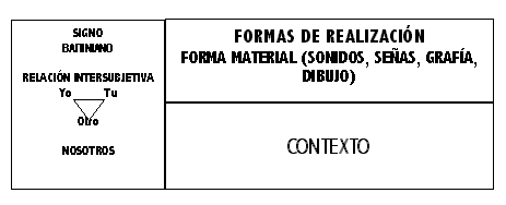 Por otra parte, el signo es el resultado de la fusión estrecha entre una forma material y el contexto, y es solamente en esta dinámica de la construcción del signo donde la conciencia se vuelve conciencia. Y, el signo a su vez emerge solamente en el proceso de interacción de una conciencia individual con otra, en el proceso intersubjetivo, lo cual significa que el signo y la situación social están definitivamente fusionados.
