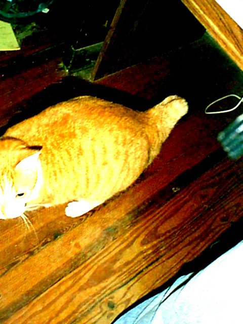 | Notice the odd thing on the right of the photo? Similar to vortexes? Well, truthfully, this is a camera strap. I was just geting a pic of my kitty. Sorry about the color, I had fun with this one. |