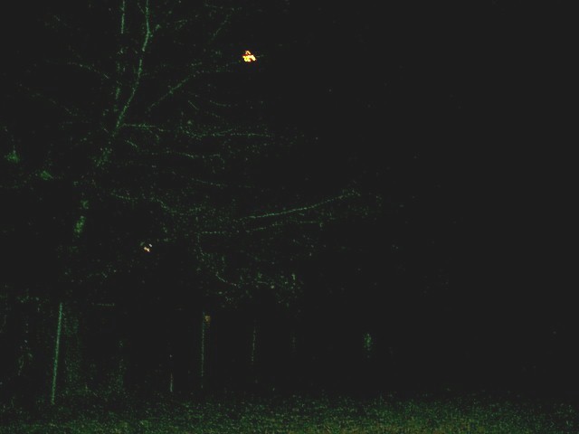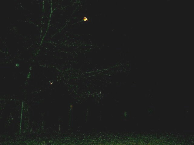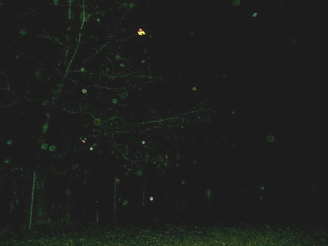 | These photos were taken in the side yard. The camera is on a tripod, no one else was around and there wasn't any wind blowing. It definately wasn't snowing (smile) and it hadn't rained for days.They're in order, 1 - 4, with about 7 seconds between them. |