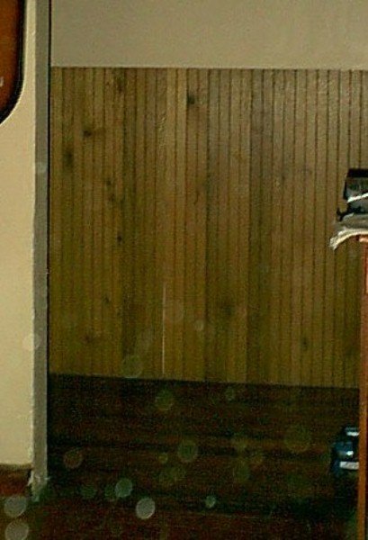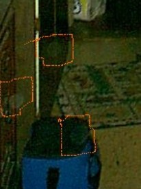 | There are two in this picture. One is down by the cabinet door, pretty faint. The other is the bright spot higher and to the right. (left) |
