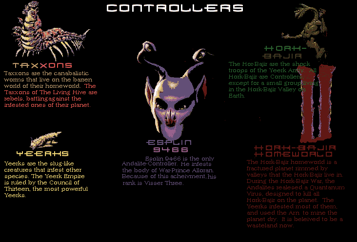 "Hi! Guess what I found?? The Visser Three/Hork-Bajir transformer at Wal-Mart!!!!! It was 19.99 and has 3 modes of change, not the usual 2!!! They are: H-B, Andalite(couldn't even bother to say Visser Three), and an "Inferno Beast". Visser Three sure has a thing for the word "inferno"!! It is a very ugly toy. It's colors are YELLOW AND BLACK with a small amount of red. It looks like a hornet!!! How come every time a Visser Three toy is in Andalite form, he has huge claws?!? Get the picture, Hasbro!!!! That's all for now! " in an email from TailStrike I got an email from TailStrike claiming that he knows KA's email. To email her, click here. **I don't know whether it's the real KA or not! Some funny, interesting and um... unofficial interviews of the Animorphs from Ellimist: Interview with Rachel, Marco, Tobias, Cassie, Ax, Jake Here's some nice pics