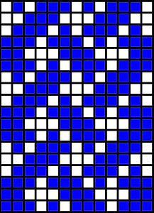 Black (or otherwise coloured) squares indicate that thread is on the top of the weaving while