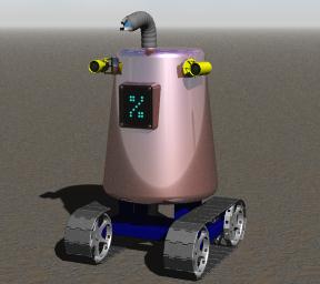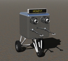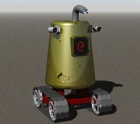 Domo first appeared to the world in my January 2001 IRTC entry, mainly so that there could be three robots to meet Rusty as he rolls up to the Petrified Orchard Valley chapter of the NLA.