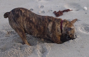 | Alice digging for crabs Photos by Beatriz Socorro |