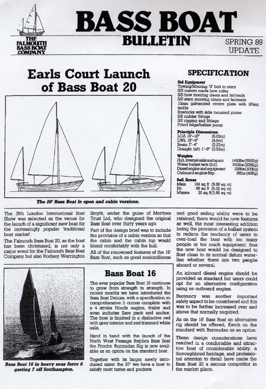 BASS BOAT BULLETINThis Bulletin was produced by the Falmouth Bass Boat Company and was published in Spring 1989. If you would like to receive a PDF of this Bulletin (which is clearer to read and printable) please contact mailto:[email protected]