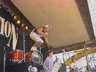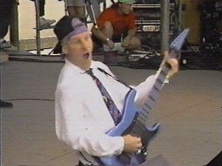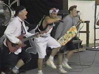 | I warned you! Apparently baggy shorts, and lime green caps were the Newsboys clothing of choice in '91. But what makes it worse was that they actually had very elaborate choreography........yea. But, not to fear! Thanks to StarSong president Darrell Harris in 1992 the Newsboys teamed up with the strange, but genius, Steve Taylor! |