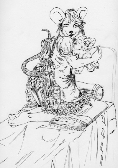 A furry infantilism piece I did on commission. India ink over pencil.